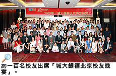 7月18日晚在北京舉行的「城大銀禧北京校友晚宴」為連串校友活動揭開序幕。約一百名來自北京、天津、香港以及在其他內地城市居住或工作的校友歡聚一堂,在樂融融的氣氛中慶祝城大建校25周年。城大校董會主席梁振英先生、校長郭位教授及協理副校長(發展及校友聯絡)陳燕玲女士出席了校慶晚會。