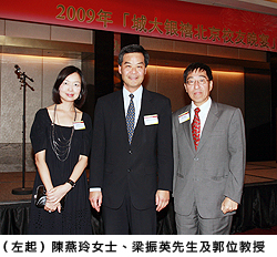 梁振英在晚宴上以「金融危機下兩岸三地的經貿機遇和走向」為題發表演說,與來自商界、教育界及傳媒的精英校友交流看法。郭位教授則在晚宴上感謝各地的校友對城大的鼎力支持。他指出,今年是城大建校25周年,如果以人比喻大學,25年恰是風華正茂、積極進取的年紀。郭教授希望藉著聚會,跟校友探討大學未來的發展方向,並期待校友能與母校保持聯繫,給予支持和回饋。
