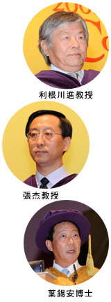 張杰教授和翁啟惠教授在頒授典禮前後分別主持了兩個學術活動。張教授的講座題為「極端環境下的世界」,集中討論超強鐳射在科學中的應用。翁教授將於11月11日主持「後轉譯蛋白質醣基化:挑戰與機會」傑出學人講座,介紹以化學和酵素方法合成複雜碳水化合物等獨創性研究的發展。這一領域的發展可為免疫系統、細菌及病毒性感染以及癌癥轉移等重大問題研究提供強而有力的平臺。