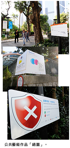 文晶瑩指出這次展覽不但能夠讓學生展示作品,也是一個汲取策劃公共藝術展覽的好機會。她說:「從事藝術創作,很多情況下需要打破傳統框架,但公眾場所有不少限制。透過參加這個計劃,學生可以嘗試在公共空間發揮創意,思考在香港從事公共藝術的可行性?!?創意媒體學院畢業生陳瑋璘負責統籌這次展覽,工作包括和參展學生討論展覽主題和形式、聯繫各個工作單位、管理場地佈置及對外宣傳。他說:「我們在城大創意媒體學院不單要學習成為藝術家,更要成為藝術工作者,除了進行藝術創作外,還要學習從事跟藝術有關的各種工作,例如藝術評論、執行展覽等?!?/p>