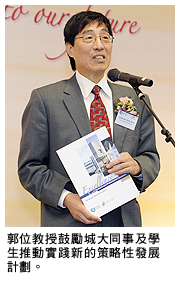 「要達到計劃訂立的整體目標,實有賴城大同仁,包括學生、各部門同事的支持。我懇請各位積極參與,並動員同事、同學推動實踐我們共同擁有的未來發展計劃,」郭教授補充說。