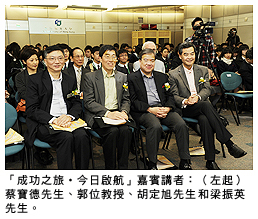 這是城大舉行的「成功之旅˙今日啟航」系列活動之一。出席活動的嘉賓包括:城大校董會主席梁振英先生、校長郭位教授、醫院管理局主席胡定旭先生、雅虎香港副總裁兼董事總經理蔡寶德先生,四人分別發表專題演講。另有四位嘉賓,即身為城大校友的資深社工蔣慧瑜女士、著名音樂人趙增熹先生、Sony Computer Entertainment Hong Kong Limited市場部總經理項明生先生、美國友邦保險區域總監洪松蔭先生,與學生一起座談,探討年輕人如何確定目標並一步步實現理想。