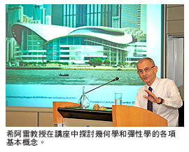 科學及工程學院大學傑出教授菲立普?希阿雷教授指出,香港會議展覽中心及澳洲悉尼歌劇院的曲面屋頂,造型獨特,反映幾何學和彈性力學所包含的數學定理如何應用在現實世界中。