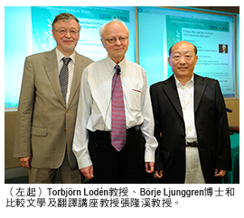 城大中文、翻譯及語言學系客座教授Torbj?rn Lodén教授為出席講座的聽眾介紹Ljunggren博士。Lodén教授說,Ljunggren博士雖然已正式退休,仍勤於著述,並協助籌辦論壇及評論時事。