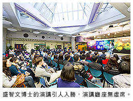 李博亞教授介紹後,盛智文博士即發表演講,形容自己一想起創新就感到興奮,並強調創意極為重要,而創新和創意都是自己事業成功的基石。