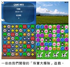 我們得到電子工程學系助理教授張澤松博士的指導(dǎo),得以親身體驗這些手機遊戲程式的編寫。修畢張博士講授的編寫Java軟件課程後,我們必須完成一件名為「珠寶大爆險」遊戲的作業(yè)。