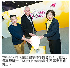 香港城市大學(城大)為三位教師頒授2013-14年度的城大傑出教學獎,以表揚他們推行創新教學模式、發揮良好影響。