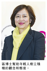 區博士把心理輔導的專業知識融入教學,努力幫助年輕人在課堂內外的學習中樹立積極的觀念和態度。