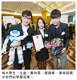 城大三名傑出學生於午宴前會見傳媒,講述他們如何準備投入職場。創(chuàng)意媒體學院學生莫梓諾為賽車車身設計的圖案已獲國際賽車隊採用;資訊系統(tǒng)學系學生鄧頌華的商業(yè)計劃贏得特許公認會計師公會的獎項;電子工程學系學生黃仲昌設計了一個手機應用程式,能控制Nao機械人執(zhí)行不同任務。