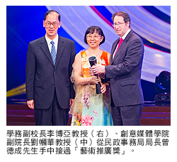 藝發局向創意媒體學院頒發「藝術推廣獎」,是表彰學院去年為城大三十周年校慶而主辦了文化藝術節。