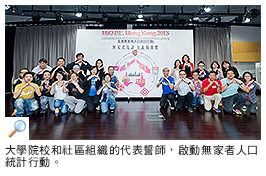 約400名香港城市大學(城大)的學生及來自其他大學和社區組織的義工,於10月16日舉行誓師大會,齊心高呼口號,正式啟動「全港無家者人口統計行動(HOPE)2015」。